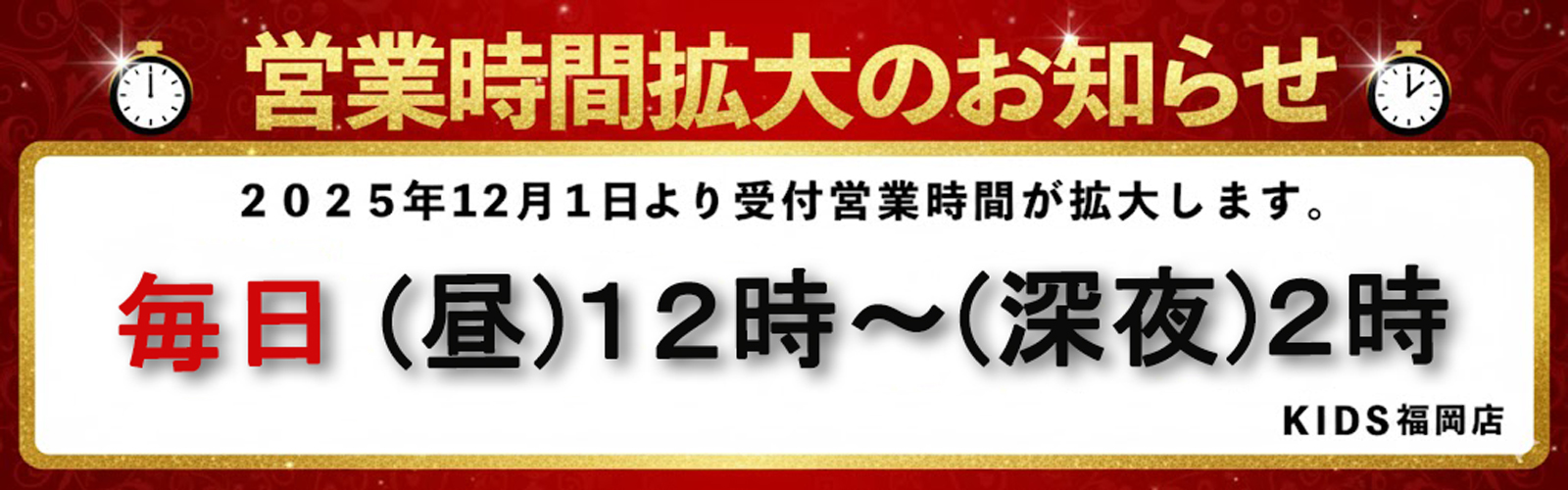 ✅ 12/1~ 受付営業時間が(昼)12時~(深夜)2時へ拡大します!